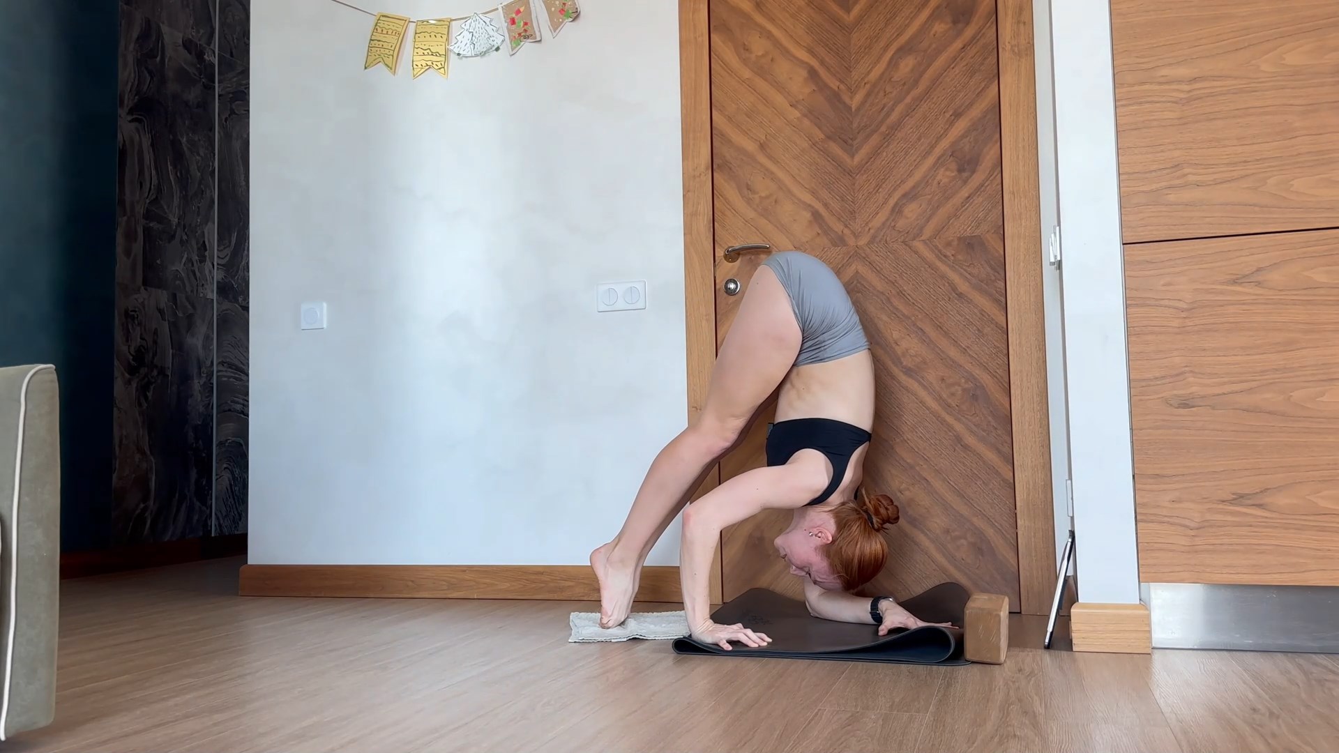Присед и тяга с ногой на стене (25 мин)